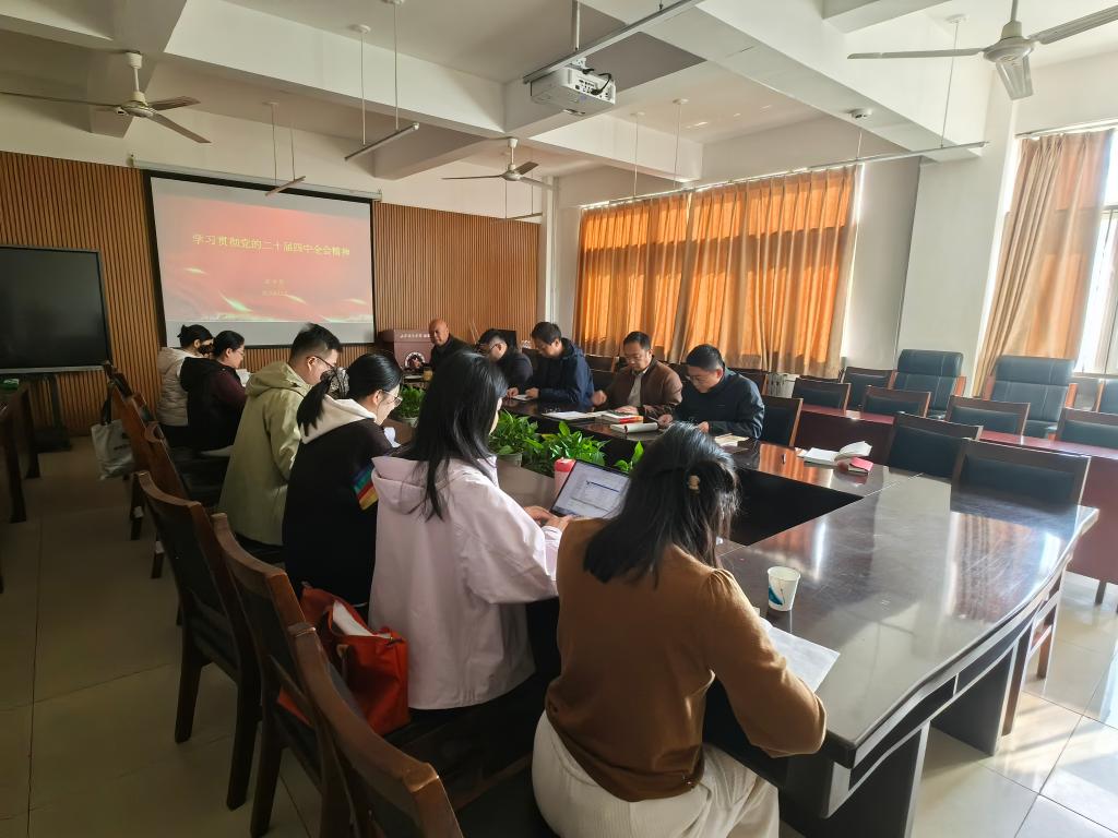 在学习交流环节,苗雨副院长结合工作实际分享了学习贯彻全会精神的体会,黄峰老师围绕自身研究方向如何服务十五五规划目标谈了自身认识,公续亮书记作《坚定做到‘两个维护”,捍卫“两个确立”,积极推动党的二十届四中全会精神贯彻落实》发言。