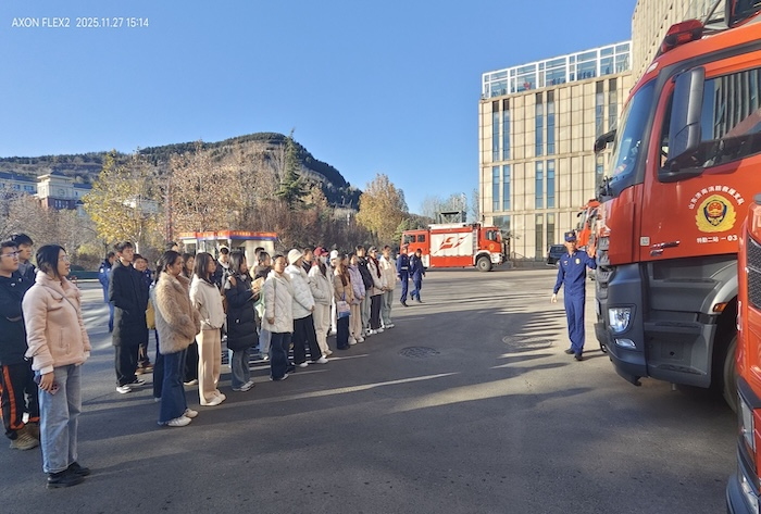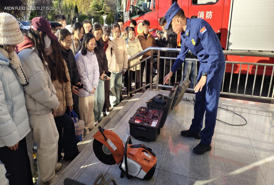 11月27日,在法学院辅导员彭瑾老师的带领下,法学院志愿服务与权益部组织学生代表走进济南市消防救援支队特勤大队二站,开展“消防护航筑安全”主题团日活动,通过实地参观学习增强消防安全意识。