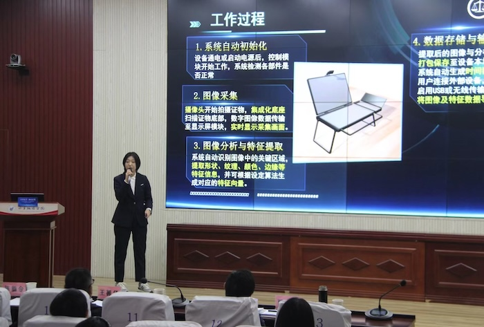 法学院参赛项目紧密围绕社会需求与科技前沿,着力推动法学专业知识与创新创业实践的深度融合。参赛作品从技术应用、服务模式与法治实践等多维度展开探索,体现了鲜明的创新特色与实践价值。在答辩环节,选手们沉着阐述项目思路,清晰解析法律支撑与技术原理,充分展现了严谨的法治思维与出色的跨学科整合能力。经过激烈角逐,“侦像确凿——一体式图像采集与特征分析取证装置”项目荣获一等奖,“法翼通声·手语护航——AI手语操作系统”项目荣获二等奖。