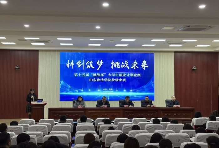 12月11日下午,山东政法学院第十五届“挑战杯”大学生创业计划竞赛在知行楼庭审直播室成功举办。大赛以“科创筑梦,挑战未来”为主题,法学院由隋欣蔚(24级5班)、田梦圆(24级5班)、王晴晴(24级6班)、孙艺萌(25级6班)、刘林航(25级6班)组成的参赛队伍凭借扎实的专业素养、紧密的协作精神与突出的创新能力,在比赛中取得优异成绩。