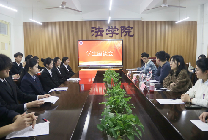 座谈会上,学生代表们围绕课程学习节奏、实践能力培养、法考复习规划、综合素质提升等方面提出思考与建议。大家结合自身学习实际,分享了对法学专业学习的感悟,表达了希望在理论与实践结合中获得更多锻炼机会的期待,并就如何平衡专业学习与课外活动、如何做好学业与成长规划等问题展开讨论。现场气氛活跃,展现了同学们积极向上的精神风貌。